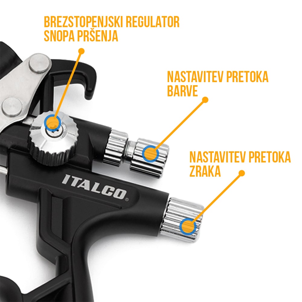 Primerna je za barvanje in lakiranje. Omogoča stalen pretok barve in ne povzroča megle (ne prši). Tesno prilagajanje šobe poskrbi, da pištola ne bo puščala. Preprosto lahko regulirate pretok zraka, pretok barve in kontrolirate snop pršenja.